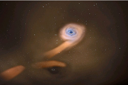 Peking University, Apr 30, 2014: A pair of supermassive black holes in orbit around one another have been discovered by Prof Fukun Liu of the Department of Astronomy and The Kavli Institute for A...