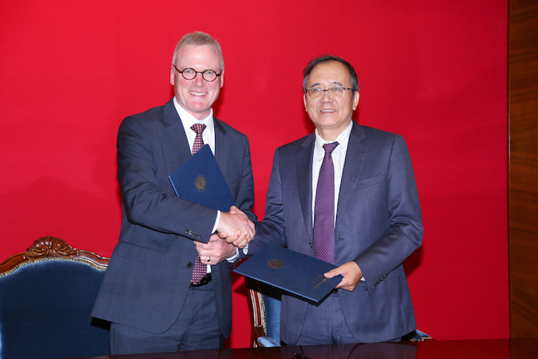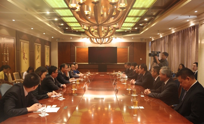 On the morning of September 20, 2016, Hongming Wei, Executive Director of Master Kong, and Kamata Kaoru, Principal of Waseda University, were here to visit Jianhua Lin, President of PKU, Yansong L...