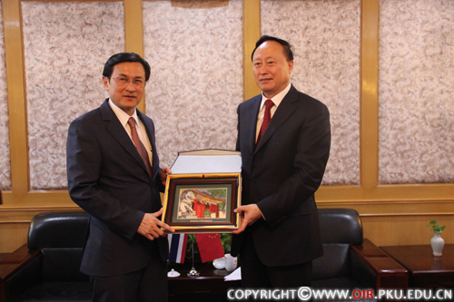 On the afternoon of April 24th, Mr Chaturon Chaisang, Education Minister of Thailand, led a delegation and visited Peking University (PKU) Prof Zhu Shanlu, Chairman of the PKU Council, met the gu...