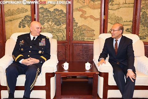 General Raymond Odierno, Chief of Staff of the US Army, visited Peking University (PKU) on the afternoon of Feb 21, 2014 Prof Wang Enge, President of Peking University, met the guests at Lin Hu X...