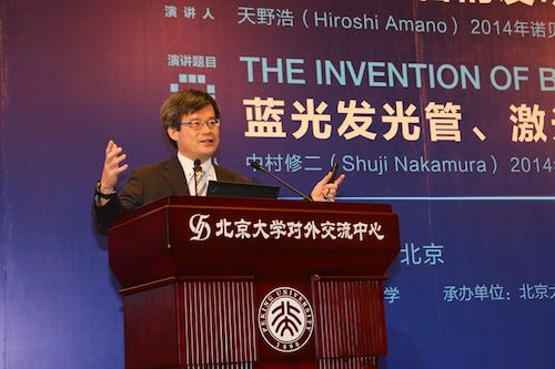 On August 31th, 2015, professor Hiroshi Amano and professor Shuji Nakamura, winners of the Nobel Prize in Physics in 2014, visited Peking University at the invitation of the Peking University Globa...