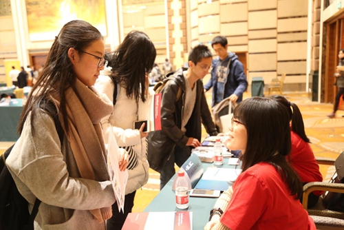 展台咨询现场参与专场宣讲的既有海外高校也有包括英国大使馆文化教育处考试部(雅思)、法国高等教育署等多所驻华教育机构。宣讲的内容涵盖了短期交换、暑期项目及毕业后攻读学位的奖学金项目申请和出国考试信息等。参加宣讲的不少同学表示希望利用在学期间短期出国交流,为毕业择校做好充足的准备。此次专程从英国飞往北京参加教育展的圣安德鲁斯大学代表表示,他们非常欢迎来自北大的同学申请圣安德鲁斯大学。该校与国家留学基金委两年前设立博士生奖学金项目。入选的同学可以在攻读博士学位期间获得学费、生活费以及往返旅费资助。