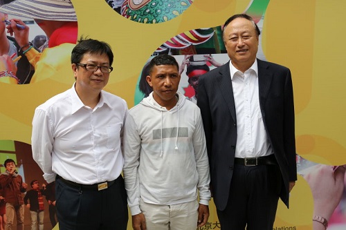 上午11时许,北京大学党委书记朱善璐在副校长李岩松和相关部门负责人的陪同下,来到新太阳学生中心看望留学生新生。在迎新现场,朱书记受到了留学生同学们的热烈欢迎,大家纷纷拿出手机合影并与书记热烈交流。来自东帝汶的Joanice da Silva是南南合作与发展学院的首批学生之一,他向朱书记表达了自己的感受:“非常高兴能有机会来到中国学习,北大第一印象让我倍感亲切;中国的发展很有借鉴意义,我希望通过努力,学习到更多有用的知识和经验,把同为发展中国家的我的祖国建设的更好。”