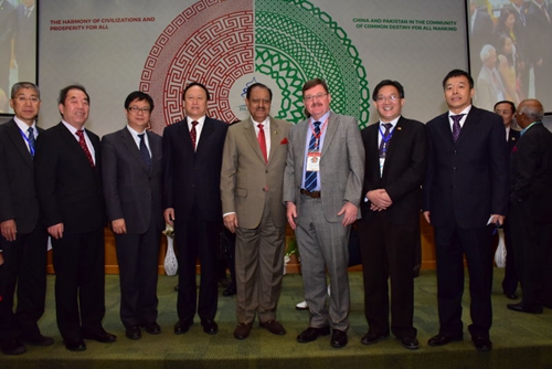 巴基斯坦总统马姆努恩·侯赛因(Mamnoon Hussain)、巴基斯坦高等教育委员会主席穆赫塔尔·艾哈迈德(Mukhtar Ahmed)、巴基斯坦现任驻华大使马苏德·哈立德(Masood Khalid)、巴基斯坦中将参谋长兼巴基斯坦国立科技大学校长穆罕默德·阿格哈尔(Muhammad Asghar),以及对中巴经济、政治、文化关系研究颇有建树的50余位外方代表及中国驻巴大使孙卫东,丝路文化发展联合会会长耿焱,北京大学党委书记、校务委员会主任朱善璐,北京大学荣誉教授、香港城市大学前校长张信刚,北京大学国际关系学院院长贾庆国,北京大学巴基斯坦研究中心主任唐孟生,北京大学人口所所长郑晓瑛,北京大学外国语学院段晴教授,北京大学光华管理学院教授武常歧,北京大学国际传播战略研究院院长程曼丽,清华大学公共管理学院教授胡鞍钢,以及来自北京大学、上海国际关系研究所、国防大学、四川大学南亚研究中心等多家学术机构的40多位中方代出席了论坛开幕式。