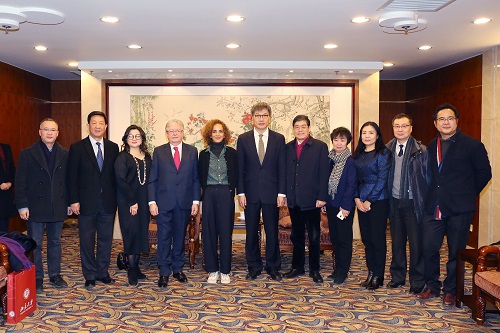 王博(左六)会见斯利马尼(左五)、戴尚贤(左四)