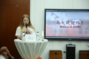 学生代表,来自美国西北大学的皮若蜜(Naomi Pieczulewski,)同学与来自美国哥伦比亚大学的邓书筠(Bridget Donovan)分别发言。她们从各自的成长背景出发,讲述了精彩的留学北大故事以及对了解中国的深切渴望。两位同学表示,有机会与志同道合的同学在燕园共同探索知识、体验不同人文景致,让她们受益匪浅。