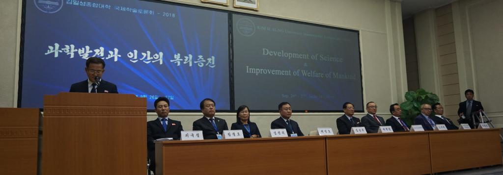 “2018金日成综合大学国际学术研讨会” 开幕式于9月26日在金日成综合大学举行,此次研讨会主题是“科学发展和增进人类福祉”。朝鲜教育委员会委员长金承斗、金日成综合大学校长兼高等教育相太亨哲、以及来自全球约130余名学者出席了研讨会开幕式。