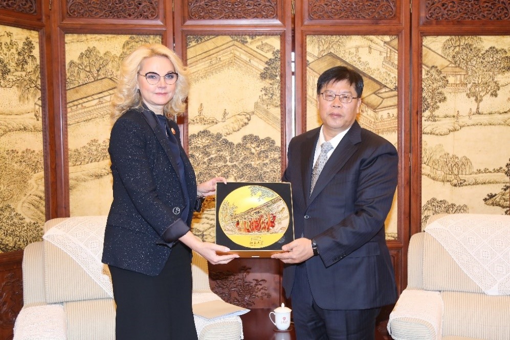 邱水平书记向戈利科娃副总理赠予北大纪念品