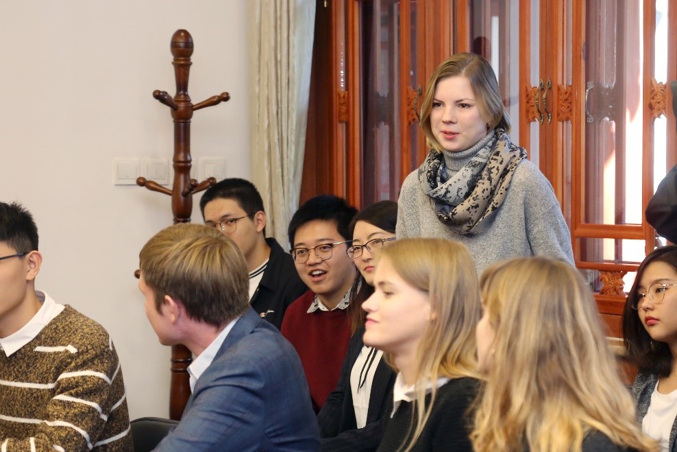 随后,戈利科娃副总理在临湖轩西厅与师生代表就中俄医疗领域资源问题、中俄跨界创新发展模式、合作范围领域等主题展开座谈交流。戈利科娃副总理表示,俄中两国关系良好,建议俄中双方继续深化合作,期待未来能有更多交流。座谈会由北大国际战略研究院执行副院长关贵海主持。