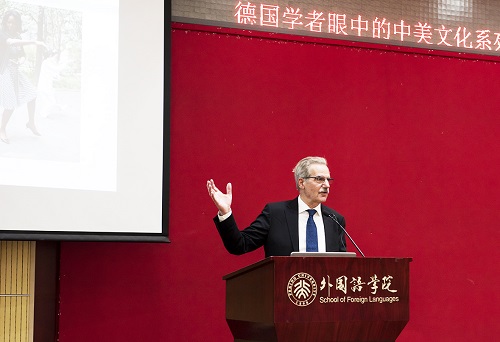 金秋十月,燕园层林尽染,硕果累累。2018年10月26日至28日,北京大学外国语学院与国际合作部联合举办高端学术讲学计划,特邀欧洲科学院院士、德国美因茨大学教授阿尔弗雷德·霍农(Alfred Hornung)做了题为“德国学者眼中的中美文化”的系列讲座。吸引了来自我校多个院系、周边兄弟院校以及中央编译出版社等300余人前来聆听。