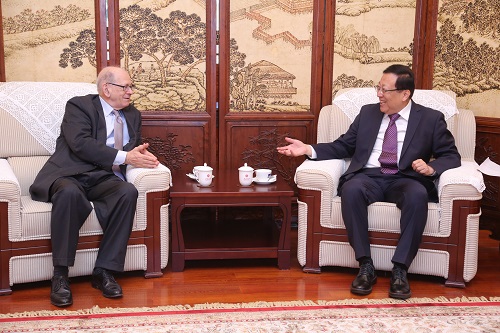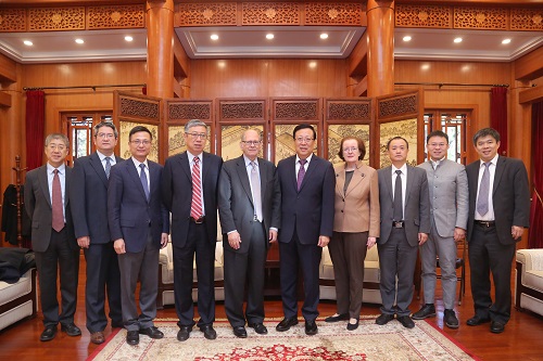 10月31日上午,2004年图灵奖获得者罗伯特·E·卡恩(Robert E.Kahn)博士应邀到访北京大学,北京大学校长郝平在临湖轩会见了卡恩博士及其夫人帕特利斯·里昂(Patrice Lyons),北京大学副校长田刚、信息科学技术学院副院长谢冰、信息科学技术学院软件所首席科学家梅宏、副所长黄罡,以及国际合作部部长夏红卫、副部长严军等陪同会见。