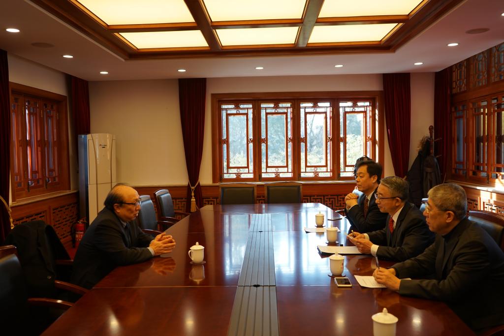 2019年1月28日上午,阿联酋沙迦美国大学副校长赵伟访问北京大学。北京大学党委副书记兼秘书长安钰峰在临湖轩会见来宾,外国语学院副院长付志明、国际合作部副部长严军陪同会见。