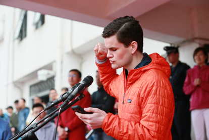 国际化是今年校运会的一大亮点。来自美国的2017级燕京学堂学生龚迈山Miles Graham作为学生代表宣誓。据了解,共有来自燕京学堂、法学院、元培学院、社会学系、经济学院、心理与认知科学学院、历史系和深圳研究生院的45名留学生参加各类比赛。60多名留学生和8名外国专家在观礼台观看开幕式和比赛。8名留学生和5名外国专家参加国际合作部方阵,他们手持“拼搏”“友谊”“超越”的多种语言手牌及“Racing from Here to the World”的横幅,展现了大家对国际友谊的追求和对体育精神的热爱,也展现了不同文明在美丽燕园的和谐交融。