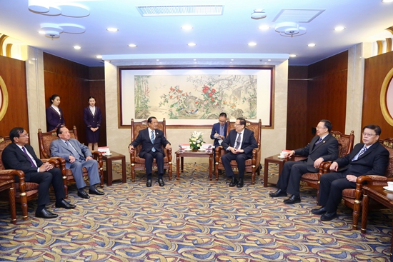 演讲会前,校领导在英杰交流中心迎接洪森首相一行的到来,双方在大贵宾室会见。洪森在留言簿上留言。