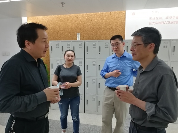 美国国家科学院院士、北京大学生物医学前沿创新中心主任谢晓亮与王永雄探讨学术问题