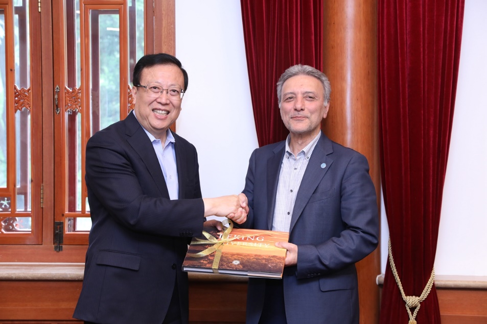 5月22日上午,伊朗德黑兰大学校长艾哈迈德阿巴迪、国际事务副校长伽赫拉玛尼、行政事务副校长扎玛尼等一行来访北京大学。北京大学校长郝平、副校长王博等在临湖轩会见了来宾。