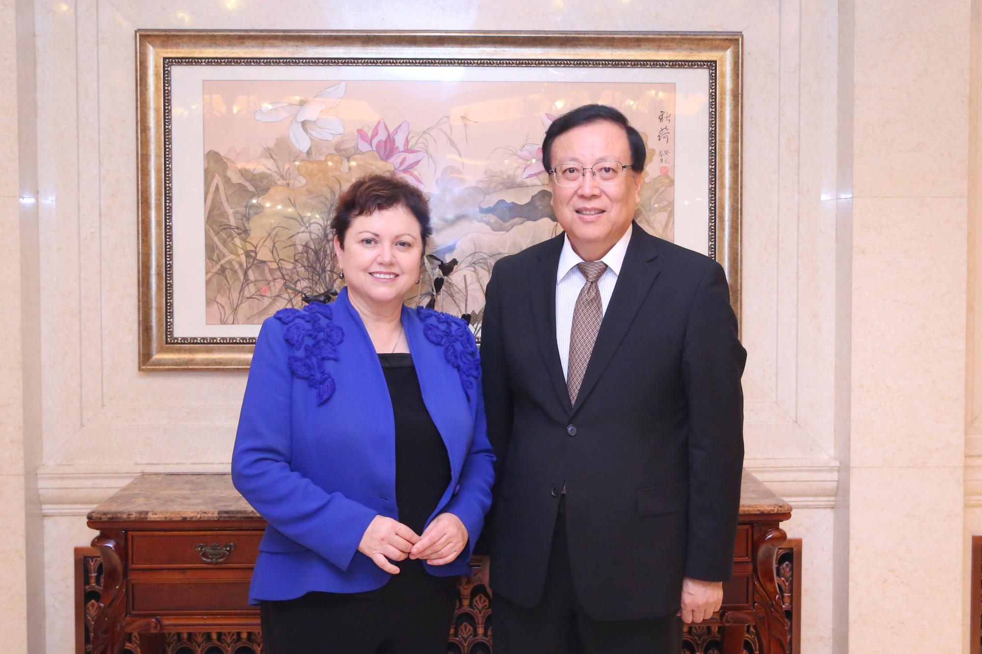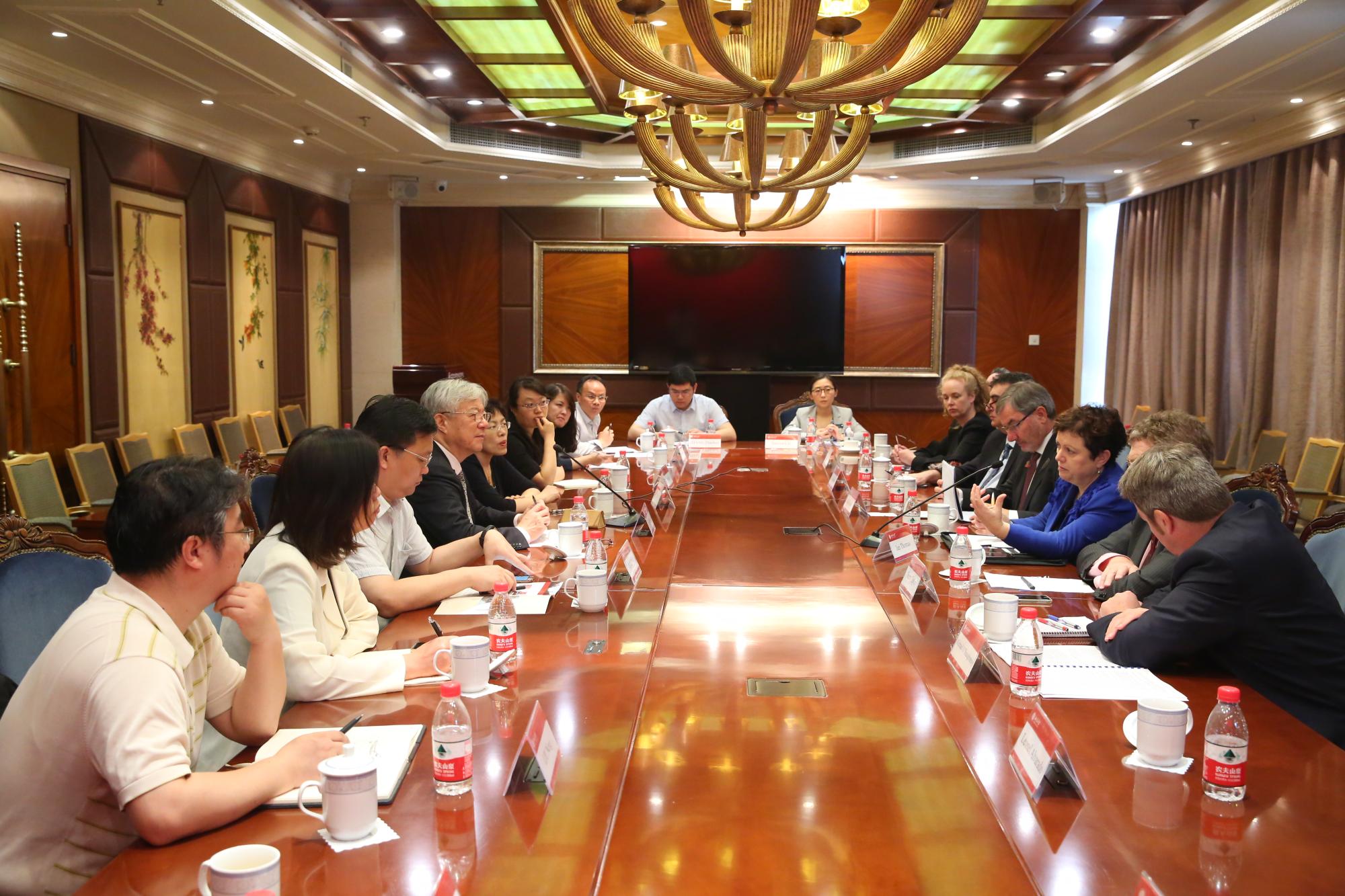 6月11日上午,新西兰梅西大学(Massey University)校长简·托马斯(Jan Thomas)率该校资深学者代表团访问北京大学。北京大学校长郝平、副校长王博在英杰交流中心会见了来宾。