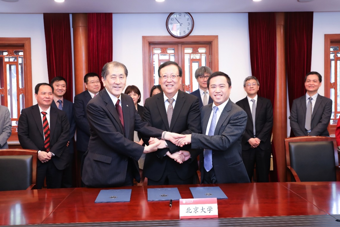 6月11日,北京大学、早稻田大学、康师傅控股有限公司三方合作签约仪式在北京大学临湖轩举行。北京大学校长郝平、早稻田大学校长田中爱治、康师傅控股有限公司董事长魏宏名出席并签署协议。