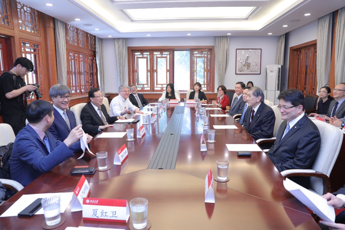 这是田中爱治第六次访问北京大学,几十年来亲身感受到中国及北大的巨大变化。他表示,早大与北大合作关系悠久,早大、北大、康师傅控股近十年来在人才培养、校园文化建设等方面也进行了卓有成效的合作。田中爱治希望今后可以继续巩固并加深三方的友谊,进一步推动合作。