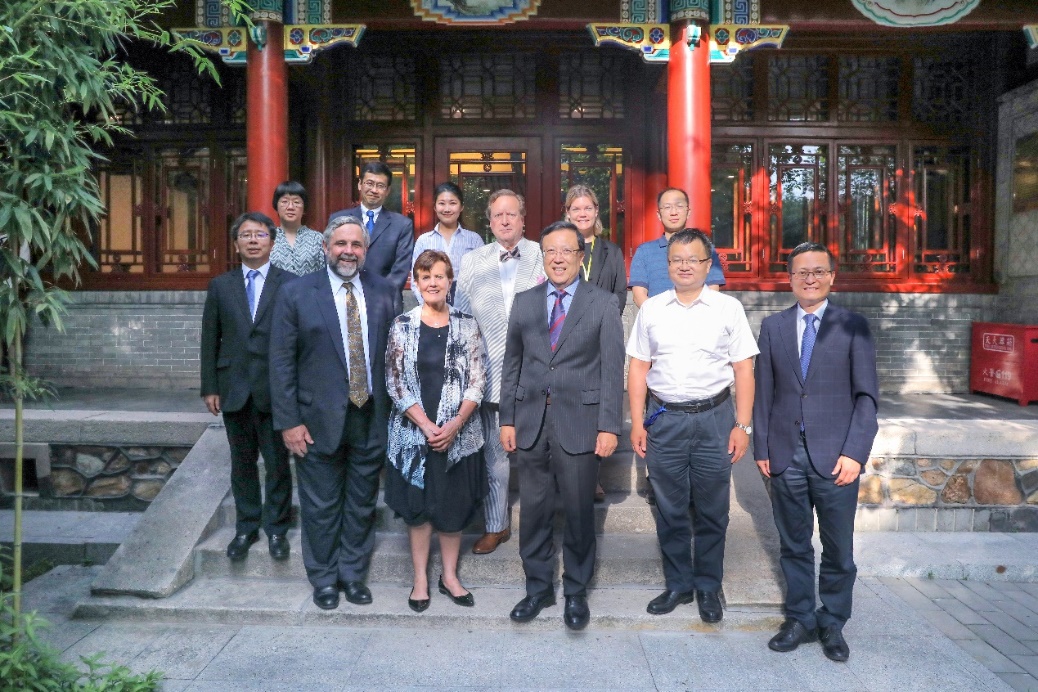 6月28日下午,林肯土地政策研究院董事会主席Kathryn Lincoln女士一行到访北京大学。北京大学校长郝平在临湖轩会见来宾。林肯土地政策研究院总裁George McCarthy博士、副总裁Armando Carbonell先生、总裁办公室主任石心蕊博士等陪同来访。