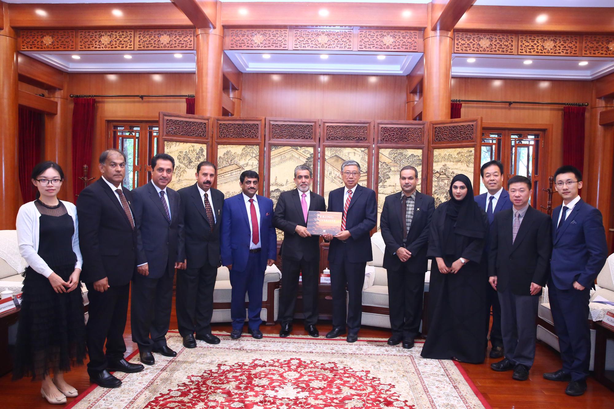 2019年9月12日,阿曼驻华大使阿卜杜拉•萨阿迪(Abdullah Al Saadi),阿曼记者协会副会长萨利姆·贾瓦里(Salim Al Jahawari)及随行代表团来访我校。北京大学副校长田刚在临湖轩会见来宾。