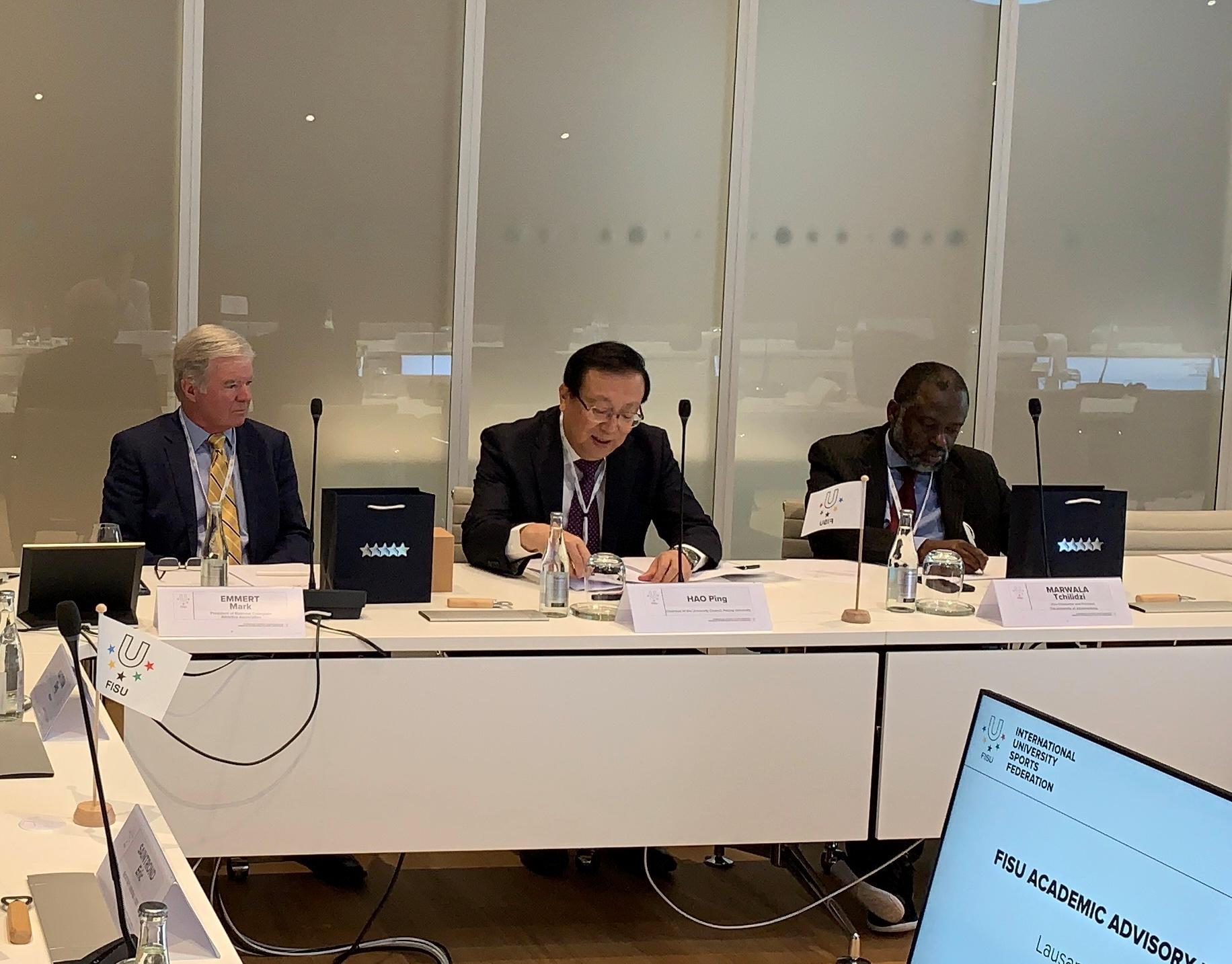 2019年9月20日,正值国际大学生体育日,北京大学校长、中国大学生体育协会主席郝平、国际大学生体联副主席杨立国、国际大学生体联发展委员会副主席申震等在瑞士洛桑国际奥林匹克委员会总部出席了国际大学生体育联合会相关会议。