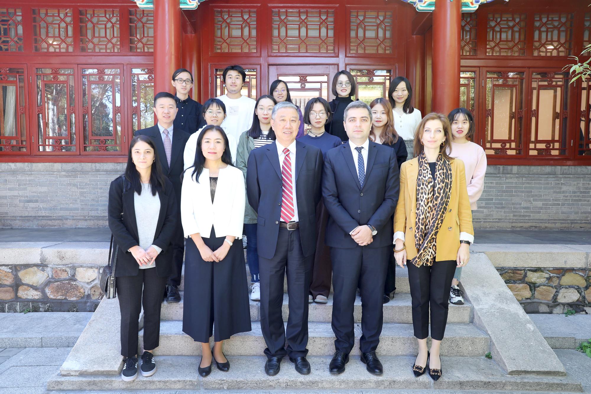 北京大学外国语学院院长宁琦、外国语学院格鲁吉亚语外教那达丽、北京大学国际合作部部长助理谷雪等陪同会见。