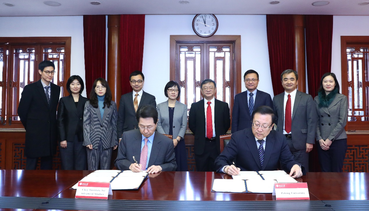 会见结束后,郝平、朴仁国分别代表北京大学、崔钟贤学术院签署关于双方共同运营北京大学亚太研究院的协议及捐赠协议。