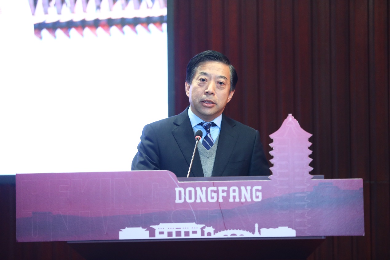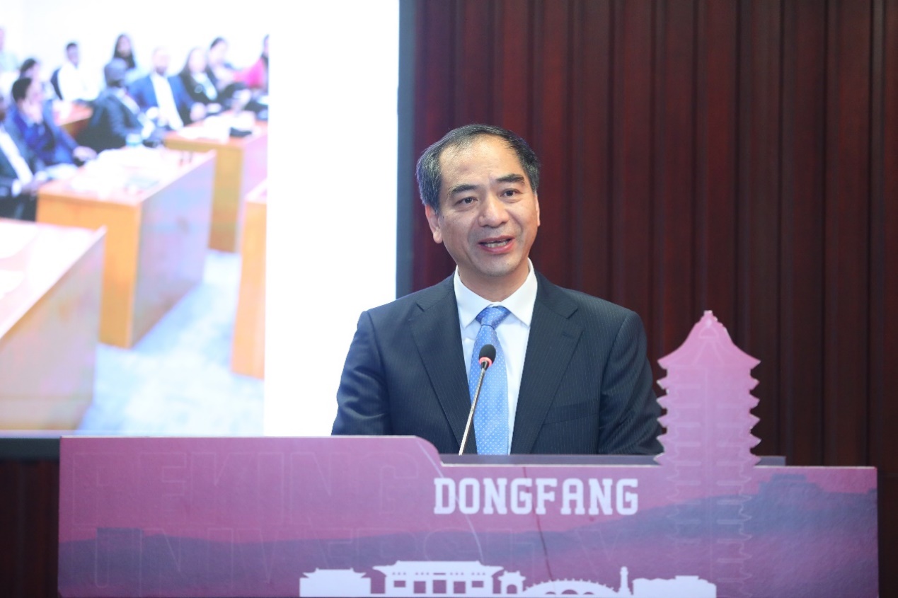 韩志强作为嘉宾代表致辞。他祝贺学员们在中国取得满满的收获,既增进了对中国国情的全面认识,也增进了对中国人民艰苦奋斗精神的理解,期待学员们回国以后学以致用,成为联结本国与中国友谊的桥梁,并祝北京大学东方奖学金项目越办越好。