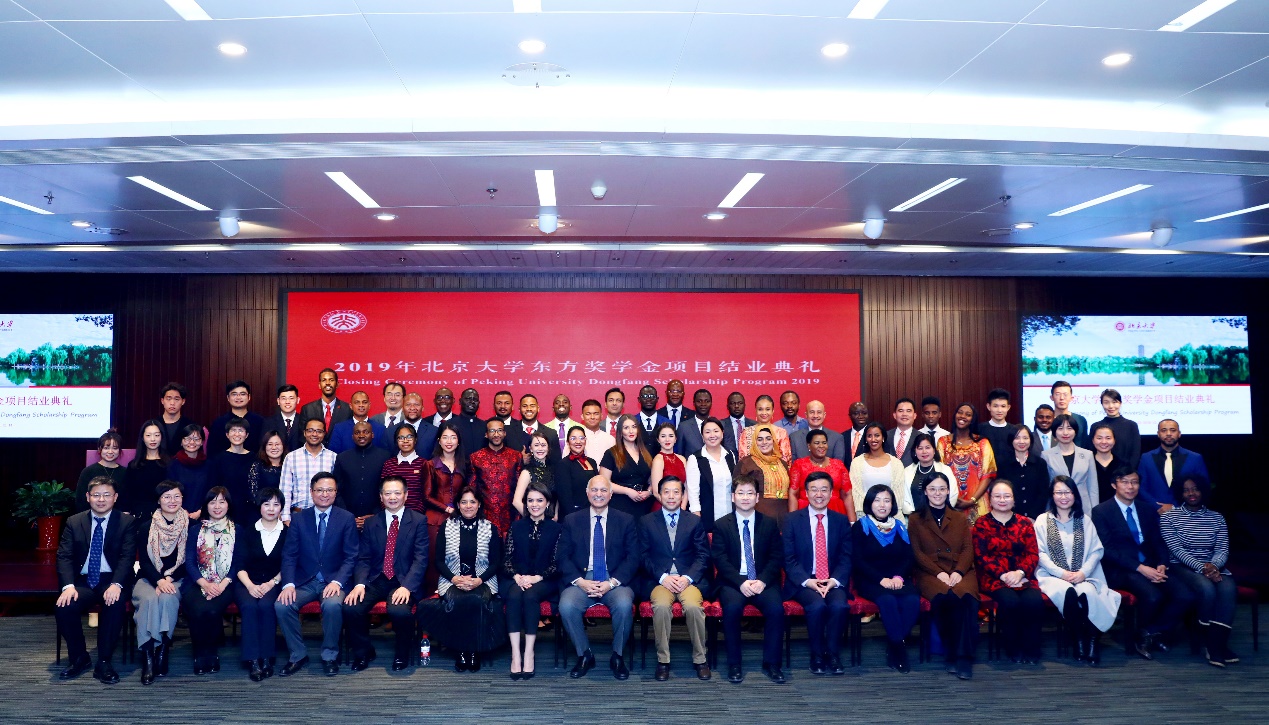 12月12日下午,北京大学东方奖学金项目首届治国理政研修班结业典礼在中关新园科学报告厅举行。北京大学副校长、教务长龚旗煌院士出席典礼并致辞。外交部办公厅主任韩志强、最高人民法院国际合作局副局长刘铭、巴基斯坦国会外事委员会主席Mushahid Hussain Sayed,教师代表、校内相关单位负责人、37位学员及其亲友齐聚一堂,共同见证首届学员顺利结业。典礼由马达加斯加学员罗斯当(Jean Rostand Rabialahy)和北大国际关系学院博士生、项目助教杜艳娇主持。