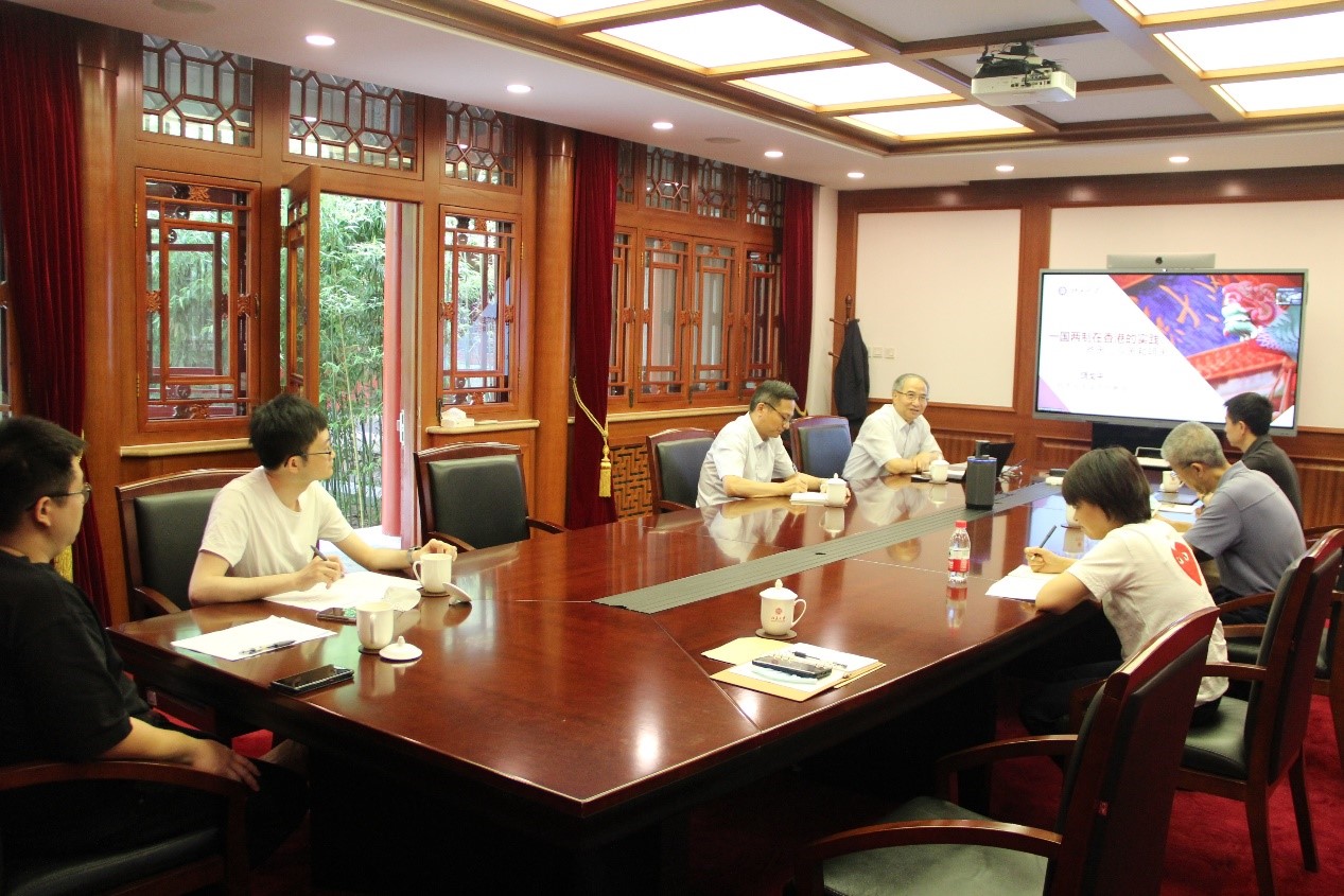 为纪念建党99周年、香港回归23周年,深入学习“一国两制”精神要义,深刻领悟习近平治港治澳新理念,“七一”前夕,北京大学港澳台办公室党支部于6月29日通过线上、线下相结合的方式,举行主题党课活动,邀请全国人大常委会香港基本法委员会委员、北京大学港澳研究中心主任、法学院教授饶戈平作专题报告。机关党委书记刘旭东,港澳台办公室主任夏红卫及领导班子成员、部门全体党员和员工参加了党课活动。党课由港澳台办公室副主任、党支部书记谷雪主持。