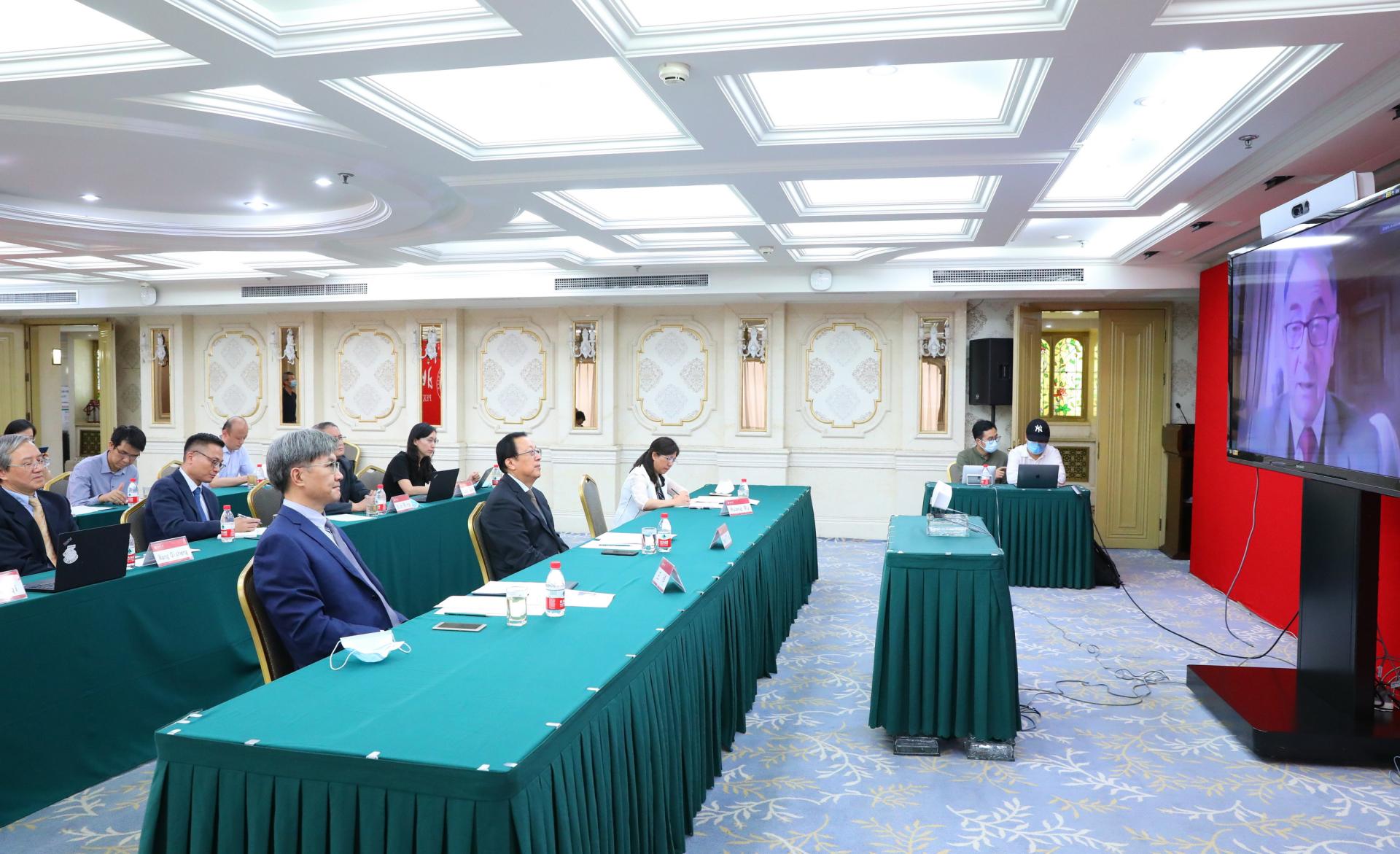 2020年7月8日下午,北京大学校长郝平在英杰交流中心连线英国皇家工程院院长、斯特莱思克莱德大学校长吉姆·唐纳德(Jim McDonald)爵士,探讨合作事宜。