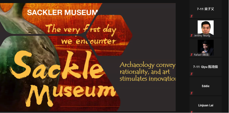 校园之旅的第二站来到了北京大学赛克勒考古与艺术博物馆。该博物馆是北京大学唯一一座考古艺术专题博物馆,此次线上游览主要从“十九世纪的‘吟游诗人’:德拉克洛瓦版画展”和“千山共色:丝绸之路文明特展”两个展览展现北大丰富的考古艺术资源。项目同学纷纷表示,讲解中呈现的“小河公主”最令人印象深刻,跨越4000年历史,从帽子到船棺,每一件出土文物都承载着厚重历史。最后,学生助理还向项目同学介绍了博山香炉,箜篌和镶红宝石金面具等珍贵藏品,带大家共同领略文物背后的朴实匠心与文化深意。