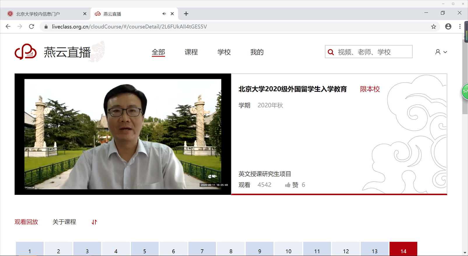 迎新周期间,各院系和留学生办公室都将安排一系列的迎新活动,通过设置老生经验分享、新生“破冰”交流等环节及组织校园探访、生涯规划工作坊、身心健康工作坊等活动,为同学们提供全方位、多样化的迎新适应帮辅。除了线下的活动以外,留学生办公室还邀请北大图书馆、研究生院及对外汉语教育学院的老师为留学生新生开拓“迎新专题课程包”,帮助同学们更好地了解学校图书馆的资源使用、研究生培养方案及中国历史文化,相关课程资源在北大“燕云直播”平台获得较高关注度,9月14号当天的资源访问量已达4500多人次。此外,留学生办公室还集结有关纪律规范类的法制宣传指南、留学指南等材料,第一时间分享给留学生新生们,确保他们在短时间内顺利融入在华、在校的新学期生活。