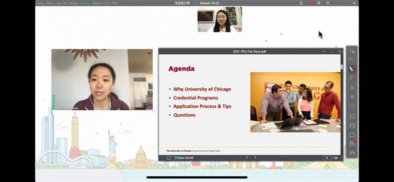 此次教育展宣讲活动共计22场,历时12个小时,单场次最高参与人数500余人次,共计在线参与活动近4600人次。 法国高等教育署项目官员李颖介绍了法国留学新动向及相关法国高校申请相关信息,并回答了学生们提出的关于法国在疫情期间对留学生的保护政策;加州大学学生海外学习项目主任PAULETTE GREISNER分享加州大学各分校申请情况及专业特色;斯坦福大学暑期项目主管Patricia Hall就疫情期间暑期项目的相关细节调整与同学们进行交流;来自国际关系学院现正在联合国日内瓦办事处秘书长办公室实习的欧阳瑞泽同学也向同学们分享了他的实习经历,也与有意愿去国际组织实习的同学交流了申请期间的准备和建议;同时北大学生海外学习项目和港澳台学习项目办公室的老师也向大家介绍了境外学习项目的具体信息和申请流程并回答了同学们关于即将开始的申请季的细节问题。即使未能面对面,大家通过网络高效沟通交流的参与度也有增无减,即使时差相隔,也一样期待复苏见面的日子。