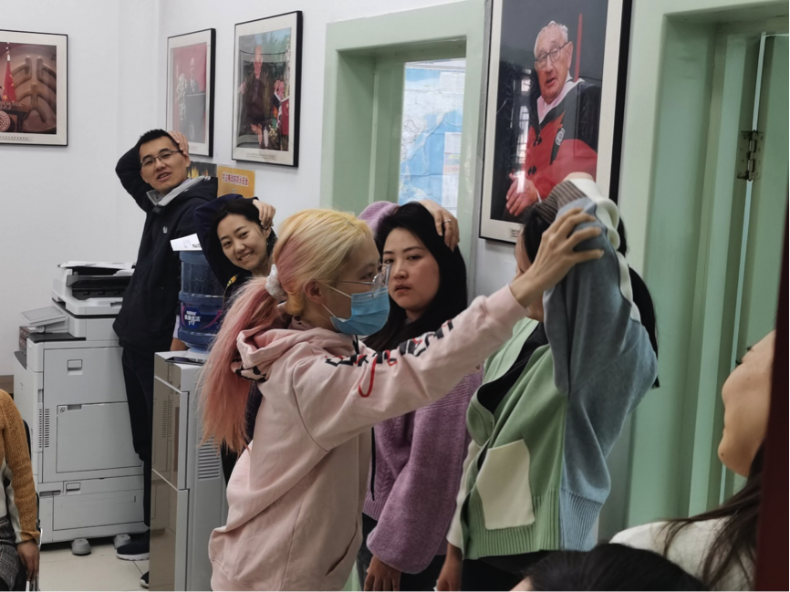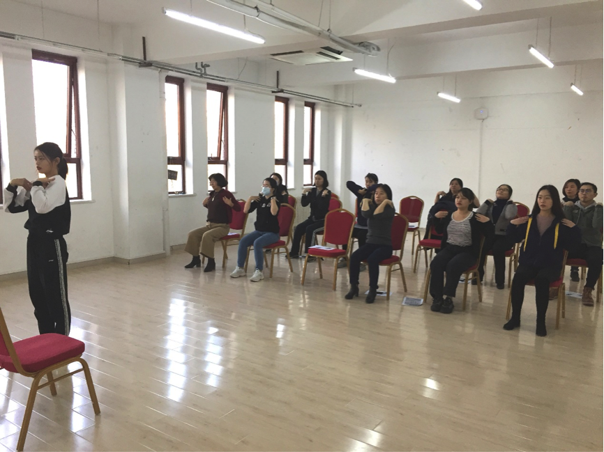 为响应学校“健康校园”倡议,推动健康办公,国际合作部组织策划“健身课堂”主题系列活动,邀请体育教研部学生讲解健康知识并进行现场教学,传授可在办公空间开展的健身动作,帮助员工在繁忙工作之余舒展身体,缓解紧张的工作压力,达到劳逸结合的效果。