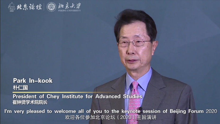 主旨报告环节由崔钟贤学术院院长、韩国驻联合国前大使朴仁国主持。美国哥伦比亚大学教授、2001年诺贝尔经济学奖获得者约瑟夫·斯蒂格利茨,剑桥大学校长杜思齐,中国疾病预防控制中心流行病学首席专家吴尊友,国际疫苗研究所总干事杰罗姆·金,中国科学院院士、发展中国家科学院院士、北京大学副校长黄如先后以视频形式作主旨报告。