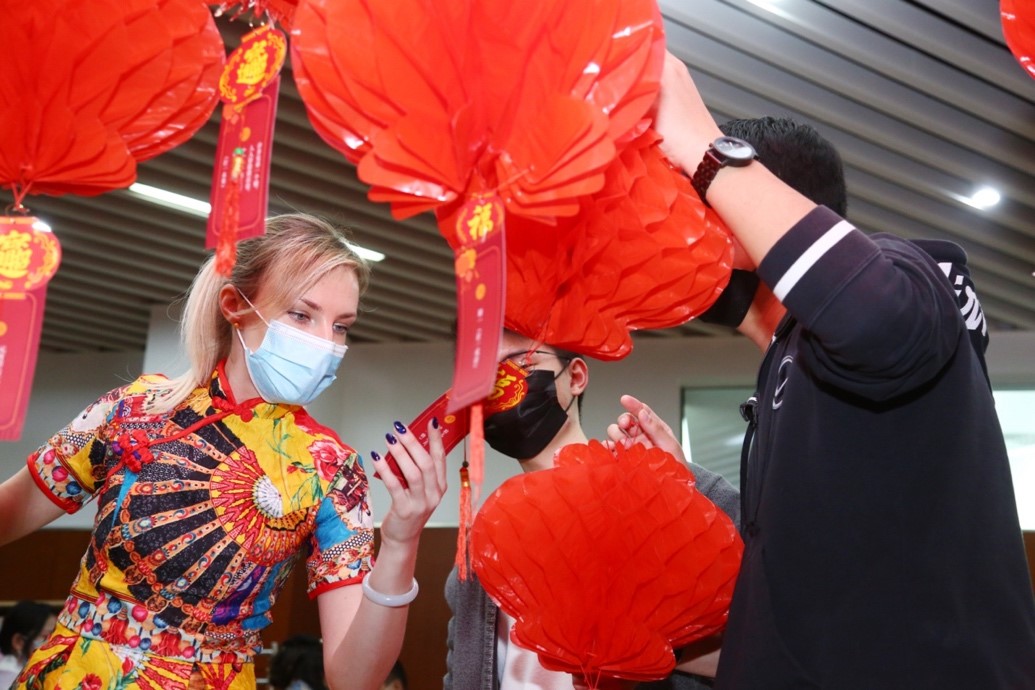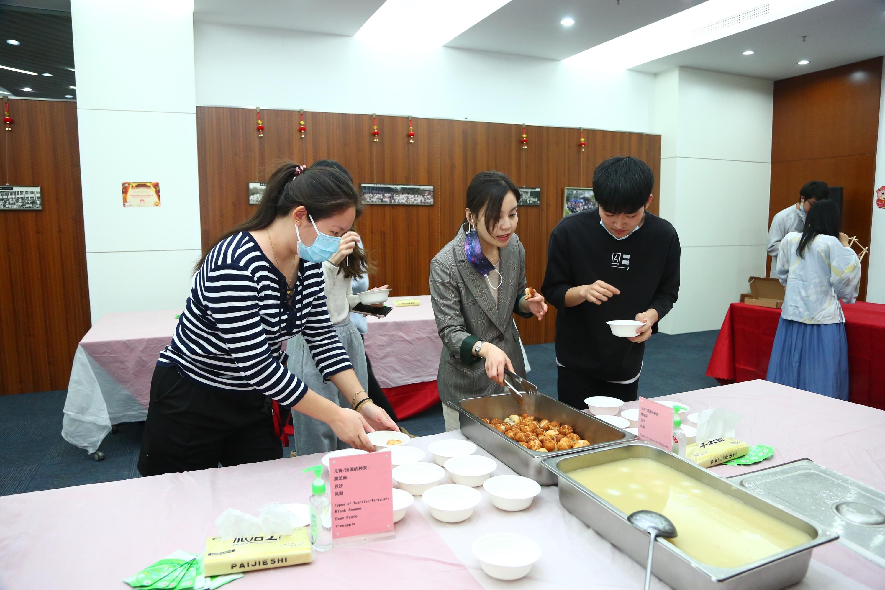 活动当日,来自15个国家地区的近30名外国留学生及专家们早早汇聚,在喜乐祥和的节日氛围中翘首以盼。上午10:30,滚元宵、做花灯、猜灯谜、吃汤圆、穿汉服、品尝京八件小吃等元宵节传统活动逐渐拉开序幕。国际合作部、中关新园领导也到场与老师同学们一起“欢天喜地庆元宵”。