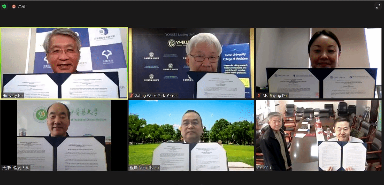 2021年3月11日至12日,亚洲校园计划公共卫生领袖人才培养项目年会在ZOOM会议室召开。中方(北京大学、清华大学、上海交通大学、天津中医药大学)、日方(大阪大学)、韩方(延世大学),项目高校合计三十余人出席会议。医学部国际合作处徐白羽教授、学院王培玉副院长、胡永华教授、任涛副院长、史宇晖副教授、高文静副教授、教办主任魏雪涛副教授、党院办主任刘杰参会。