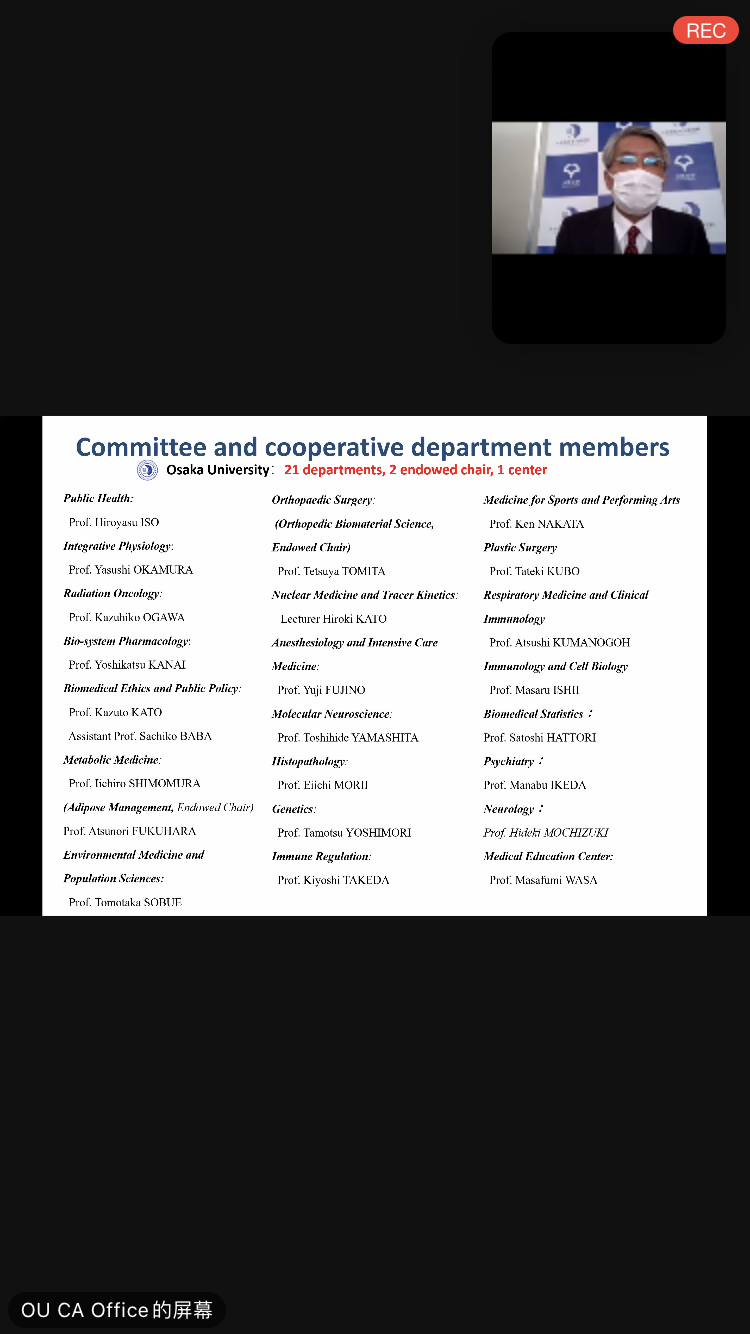 3月11日上午为年会第一部分,主题为项目五年总结。大阪大学副校长Kawahara代表主办方大阪大学致辞,对疫情期间三方线上年会的顺利举办表示祝贺,对项目五年来取得的丰硕成果表示肯定和赞赏。而后大阪大学Iso教授等各方高校项目组负责人轮流发言,对五年来的探索、成就及经验进行回顾。