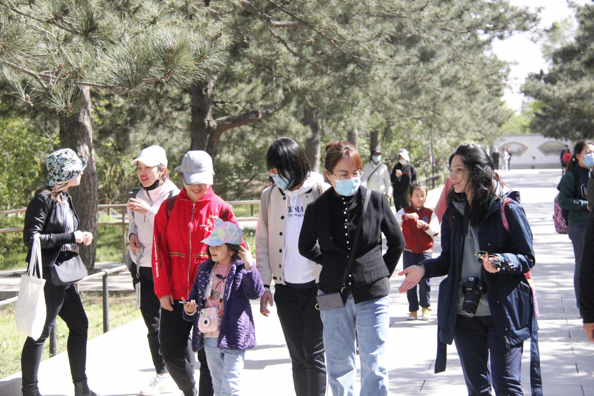 走进园内,盛放的山桃与奔流而下的溪水相映,与远处的青山相映衬,恰似桃源仙境。海棠凝香吐艳,霓裳片片,玉立亭亭,郁金香、丁香、流苏等万花风中争艳,春蕊烂漫,香雾空蒙。面对满园春色,犹如画中游,中外教师一路驻足观赏,合影留念,充满欢声笑语。在曹雪芹纪念馆,大家参观了曹雪芹和红楼梦有关实物资料展览,聆听了外专中心同学关于曹雪芹生平以及其著名长篇小说《红楼梦》的介绍,游览了"河墙烟柳"、"薜萝门巷"、"竹篱茅肆"、"柴扉晚烟"等景点。外专们还在礼品店挑选了印有曹雪芹、蒲松龄、红楼梦人物画像的信封和邮票,打算写好信寄给他们远在国外的亲友,让他们感受中国文化,致以春日祝福。