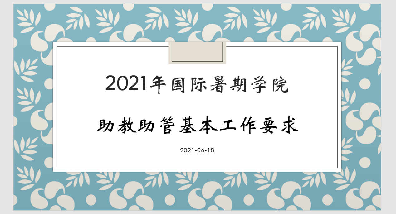 之后北京大学国际暑期学院老师还向助管助教同学们详细讲解今年工作的基本要求,通过对2021年国际暑期学院平台的课程、学生、教师基本情况进行介绍,提醒助管助教同学如何以时间顺序做好具体工作,并对有关更换课程、成绩评定、成绩公布、重要活动、课程评估以及课程宣传等方面进行了详细要求和提醒。2021年北京大学国际暑期学院助教助管培训活动第二讲及第三讲活动结束。后续,助管助教同学们还将继续进行包含在线教学平台、全纳教学原则、常用办公软件使用、人际交往及团队协作等模块内容的学习培训,为7月份顺利投入2021年国际暑期学院工作做好准备。