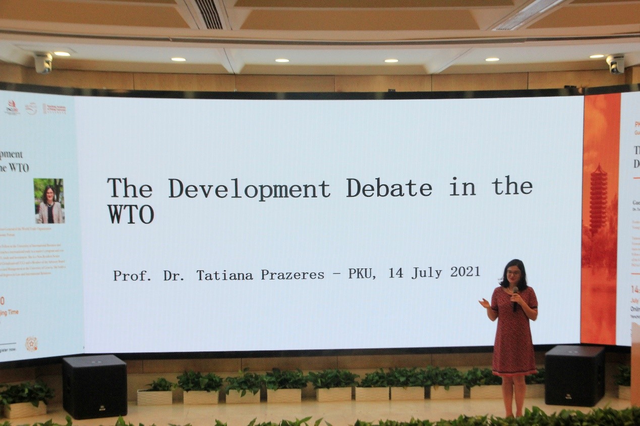 2021年7月14日下午,由北京大学国际合作部、PKUIO、燕京学堂联合举办的北京大学国际暑期学院、北大-芝大国际政策暑期项目特邀嘉宾讲座系列第二场讲座举行。世界贸易组织(World Trade Organization, WTO)前总干事高级顾问塔蒂亚娜·普拉泽雷斯(Tatiana Prazeres)博士做了题为《世界贸易组织中的发展问题辩论》(The Development Debate in the WTO)的专题讲座。