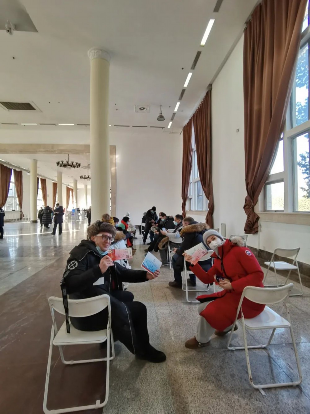 背后的“我们”,同样用朴素的力量温暖着每一个人的心。在去往鸟巢的路上,每隔一段都有一个引导志愿者,志愿者热情地向大家挥手,并祝福大家新年快乐,“在这个时候,我意识到我们其实也在过春节。”这些志愿者不能回家与家人团圆,而是坚守岗位,为每一位观众提供着热心的帮助。进入场地内,也有志愿者引导大家坐到相应的位置,每个人的座位上很贴心地准备了一个装有帽子、手套的暖心礼包。在开幕式演出将近两个小时的时间里,志愿者引导大家鼓掌,拍手,调动场内气氛,有些志愿者为了方便工作,并没有佩戴手套,“场馆里还是很冷的,他们让我感受到了一股忱忱热心和奉献精神,就像燃烧的雪花那样!”