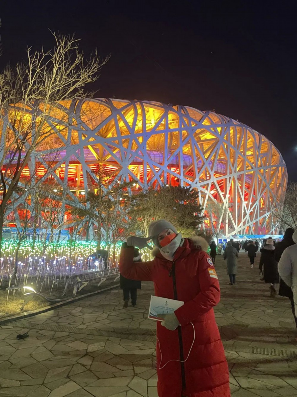 冬奥会开幕式当晚安泽在鸟巢外留影