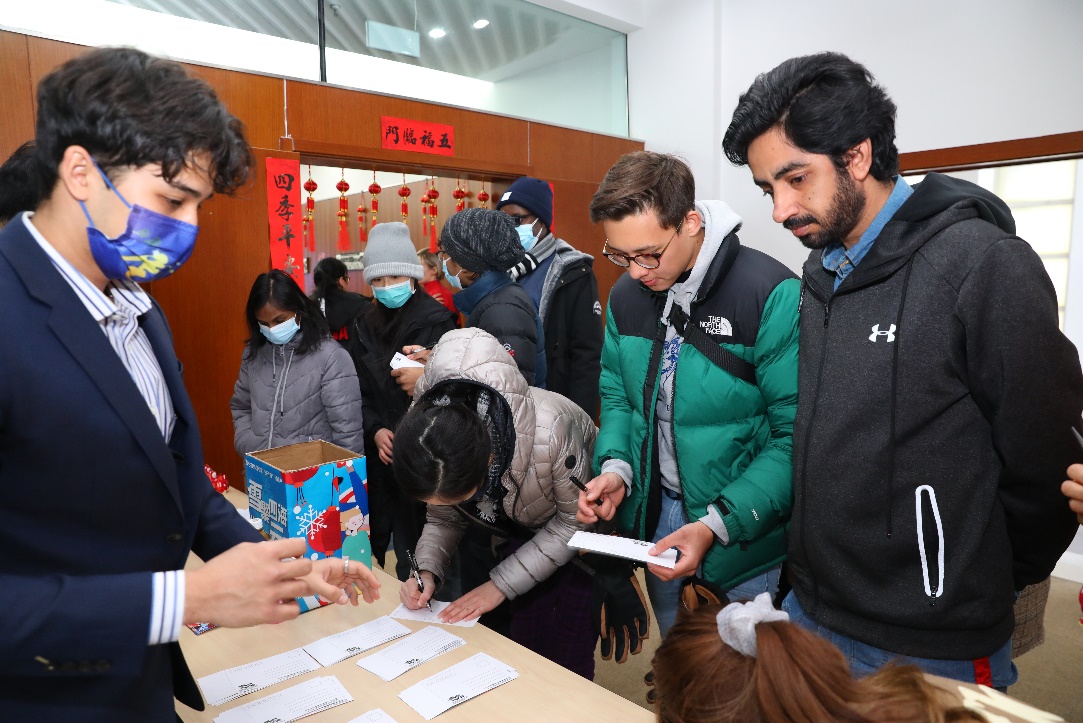岁岁年年情谊依旧,年年岁岁友人相伴。在中关新园5号楼共享空间,来自十多个国家的近40名留学生及外国专家热切相聚,共度元宵佳节。入场券的设计延续北京冬奥会的“中国式浪漫”,撕下副券后摇身变成一份寄往未来、分享祝福的明信片。老师同学们纷纷执笔写下对2022年的新年祝福,憧憬着将美好真诚的祝愿传递给他人。