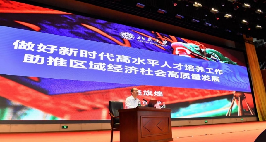 8月24日,龚旗煌赴遵义医科大学参加2022“中国-东盟教育交流周”首届高校助推区域经济社会高质量发展论坛,发表题为“做好新时代高水平人才培养工作,助推区域经济社会高质量发展”的主旨报告。龚旗煌从对新时代高水平人才培养的认识、北京大学在新时代高水平人才培养的理念和举措以及北京大学在服务区域经济社会发展方面的经验与规划三个方面,深入阐述了人才是推动区域发展最重要的力量,培养和输送更多高水平人才是大学服务区域发展最核心的基础性工作。