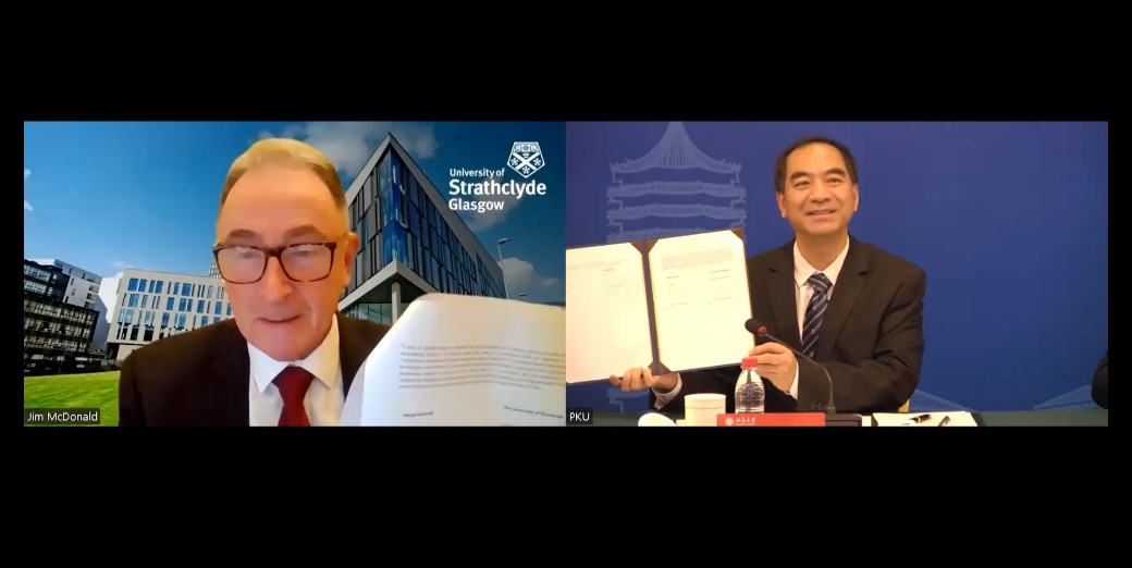 双方共同签署了《北京大学-思克莱德大学可持续发展和脱碳项目协议》。该项学术合作与联合国全球净零排放目标相契合,两校将携手,协同英国皇家工程院等顶尖高校和学术机构,运用工程技术和系统思维提出脱碳政策建议,交流科研成果,并开展更多的学术探讨,为中英两国实现碳中和目标贡献学术力量,促进中英双方在脱碳领域的政府间合作,进而为全人类的共同福祉作出贡献。