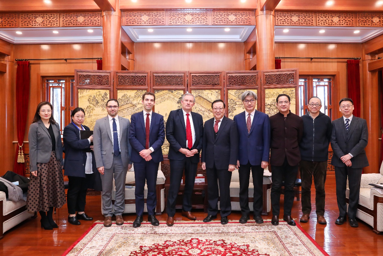 2023年2月14日下午,法国驻华大使罗梁(Laurent Bili),法国驻华使馆文化、教育与科学事务公使衔参赞裴国良(Nicolas Pillerel)一行访问北京大学。北京大学党委书记、校务委员会主任郝平,副校长兼教务长王博在临湖轩会见来宾。
