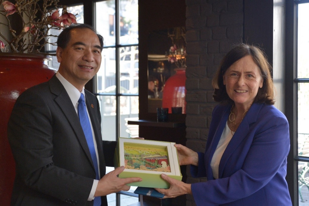 访问奥地利期间,龚旗煌一行访问了中国驻奥地利大使馆,拜会亓玫大使,就中奥两国如何通过科教合作开展科学外交,加强对欧合作,加强基础科学、智库交流等领域进行深入探讨。亓玫大使表示,将全力支持中国与奥地利在科教领域的合作,推动高等教育对外开放新发展。